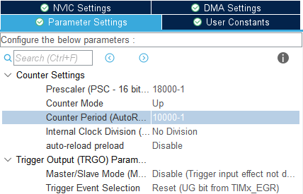 사용하려는 Timer 번호에 맞는 Bus에 맞게 Clock 설정 후 이에 따라 주기를 설정한다.