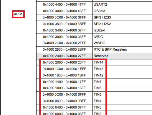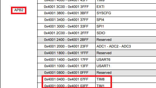 Datasheet 상에 Memory Map을 보면 각 사용 가능한 Timer과 어떤 Clock bus를 이용하는지 확인 할 수 있다.