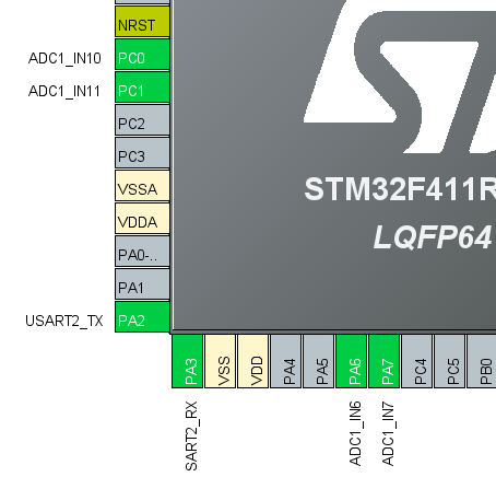 ADC1 컨트롤러 - 채널 IN0 , IN1, IN6, IN7 사용