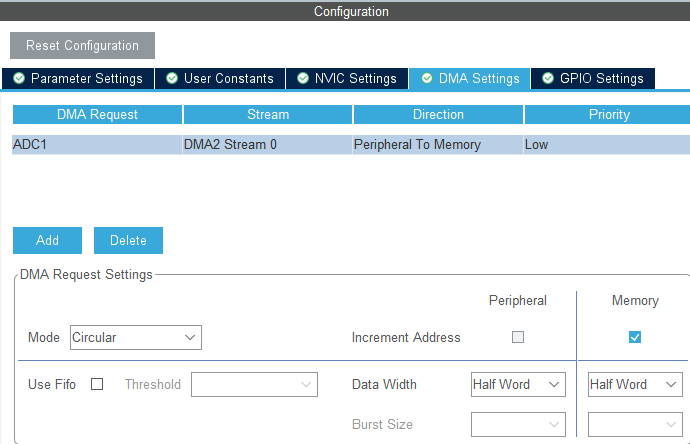 ADC DMA Settings : Circular